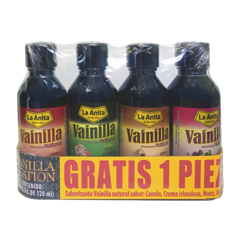 Mezcla líquida de saborizantes artificiales y naturales cuya función es impartir sabor a vainilla y frutos rojos, que contiene conservadores y aditivos, ideal para saborizar postres y bebidas.